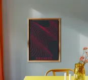 Un manifesto astratto di grande impatto visivo che combina le basi geometriche del Bauhaus con il movimento dinamico della Op Art. Il disegno è dominato da sottili e vibranti linee rosa/rosse che si curvano, ondeggiano e convergono, creando l'illusione di una superficie deformata o tridimensionale. Questo complesso disegno si staglia su uno sfondo grigio antracite intenso, massimizzando l'effetto visivo e il contrasto. Il termine "BAUHAUS" è scritto in grassetto, in caratteri sans-serif rosa, nella parte inferiore. Questo download digitale ad alta risoluzione (7000x5000 pixel, 300 dpi) garantisce una stampa nitida e d'impatto.