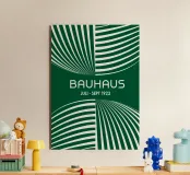 Un poster astratto sofisticato e dai toni profondi che unisce la tipografia pulita e funzionale della scuola Bauhaus con il movimento visivo della Op Art. Il disegno presenta quattro quadranti di linee curve e radianti color crema su un ricco sfondo verde foresta, creando un'ipnotica illusione ottica di profondità e flusso. Questo pezzo è un'irresistibile miscela di geometria moderna e tavolozza di colori classici. Il testo "BAUHAUS" e "JULI - SEPT 1923" sono chiaramente centrati. Fornito come file digitale di alta qualità (7000×5000 pixel, 300 dpi), garantisce una stampa nitida, ad alta definizione e di qualità da galleria.