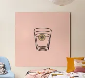 Bevanda rinfrescante in un bicchiere trasparente con una fetta di limone alluminio dibond