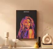 Un ritratto vivido di Beyoncé con capelli fluenti ed espressione sicura.