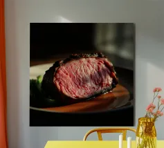 Bistecca succulenta su un piatto bianco dal design semplice alluminio dibond