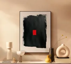 Black And Red Minimal Abstract alluminio dibond con Cornice Artbox