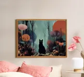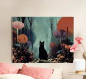 Gatto nero nella foresta incantata alluminio dibond