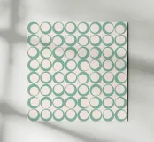 Questo motivo ad anelli retrò blu menta unisce un fascino fresco e retrò con una geometria morbida ispirata agli anni '60 e '70. Le sue curve morbide e ritmiche aggiungono un tocco fresco ed eclettico, ideale per stampe, complementi d'arredo e spazi contemporanei in stile rétro.