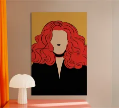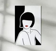 Un ritratto sorprendente e minimalista di una donna con un bob nero e un audace rossetto rosso. L'aspetto senza volto, che si concentra sulla silhouette e sulle caratteristiche principali, crea un'immagine moderna, grafica e misteriosa.