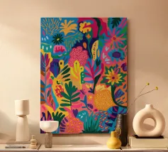 Arte botanica in uno stile visivo ad alta energia definito da linee spesse, blocchi di colore vibranti e composizioni dinamiche. Gli scarabocchi di fiori e piante pulsano di movimento ed emozione, resi con un'estetica dipinta a mano. L'espressione cruda e la sfida giocosa fondono la spontaneità della street-art con un senso di chiarezza grafica.