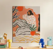 Calma in arancione - Illustrazione femminile alluminio dibond