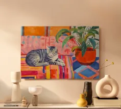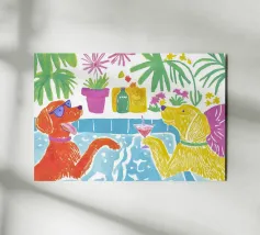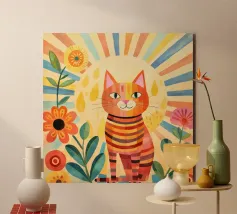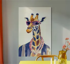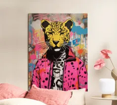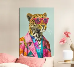 Illustrazione stilizzata di un carismatico ghepardo vestito in modo casual chic con occhiali da sole eleganti e una posa da dandy sicuro di sé. Con la sua tavolozza vibrante e il suo tocco favoloso, quest'opera d'arte celebra l'individualità, lo stile e la fiducia in se stessi. Perfetto se amate le vibrazioni della fauna tropicale con uno spirito moderno.