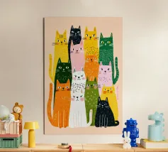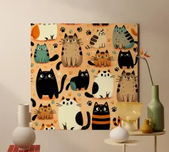 Questo motivo illustrativo di gatti presenta adorabili gatti stilizzati disposti in un design affascinante e moderno. Perfetta per gli amanti dei gatti, questa giocosa opera d'arte aggiunge personalità e calore a qualsiasi spazio. Ideale come opera d'arte da parete, carta da parati o stampa per motivi di gatti, illustrazione di gatti, arte di gatti carini, arte da parete giocosa, disegno di motivi di gattini, illustrazione di animali, arredamento di vivai, regalo per amanti dei gatti, stampa d'arte stravagante, opera d'arte moderna per animali domestici, gatti dei cartoni animati, motivo ripetuto, arredamento accogliente per la casa, arte da parete per la camera da letto, design di gatti kawaii, arredamento a tema animali domestici, stile di carta da parati per gatti, poster di illustrazioni, stampa estetica di gatti, opera d'arte adorabile.