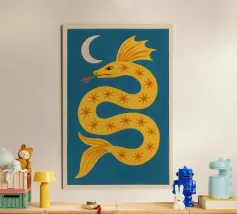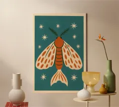 Una mitica falena elementare svolazza in una ricca notte verde acqua, con le sue ali verde salvia accentuate da motivi a goccia dorati e delicate antenne arricciate. Incorniciata da stelle fluttuanti e da una luna crescente, la creatura sognante unisce la brezza marina alla meraviglia cosmica. Stampato su carta opaca d'archivio, ogni venatura delle ali e ogni macchia scintillante rimane intatta. Ideale per studi creativi, angoli di lettura o camere da letto che desiderano un punto focale calmo e curioso, celebra la trasformazione, l'esplorazione e la poesia del volo.