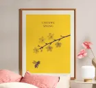 This work of art from Artezza captures the delicate moment between a bee and blossoming cherry branches. The minimalist design in warm yellow and contrasting purple combines nature poetry with modern aesthetics. The fine texture, clear composition and elegant typography make "Chasing Spring" an expressive wall decoration - ideal for calm, stylish rooms.