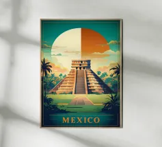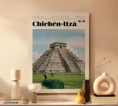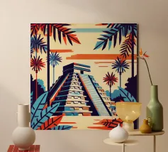 Questa immagine splendidamente stilizzata raffigura l'iconica piramide di Chichén Itzá in colori tenui e caldi, creando un aspetto rilassante ed elegante. I toni tenui e le linee raffinate conferiscono al poster un'atmosfera moderna e minimalista, mantenendo al centro l'impressionante architettura e la ricca storia di questo luogo speciale.