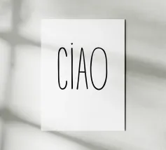 Questo vivace design presenta la parola "Ciao" in un audace carattere di ispirazione retrò con caratteri rosa acceso e un sorprendente contorno arancione.
