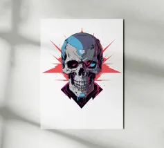 Si apre un paesaggio ipnotico, dove cime imponenti trafiggono un cielo pieno di sfere di luce. La scena è un tripudio di colori, con sfumature di arancio, rosa, blu e viola che si fondono senza soluzione di continuità. L'uso di linee spigolose e taglienti accostate a forme morbide e arrotondate crea una tensione visiva accattivante. Un fiume tranquillo si snoda nella valle, riflettendo i colori vibranti che la sovrastano. Quest'opera invita lo spettatore a esplorare un mondo in cui colore e forma danzano in perfetta armonia.