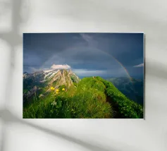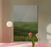 Colline verdi con arcobaleno e rocce alluminio dibond