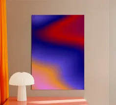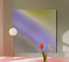 composizione di linee morbide e fluide in viola e giallo alluminio dibond