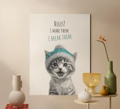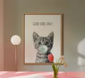 Questo gatto ha semplicemente tutto: è fresco, elegante e con un tocco di coolness! Con la sua gomma da masticare turchese e il suo sguardo innocente, diffonde puro buonumore ed è il motivo perfetto per chiunque ami l'energia positiva e l'umorismo. Il design moderno e minimalista combina una sottile illustrazione in bianco e nero con un fresco accento turchese; semplice ma espressivo. Un must per i fan dei gatti, per gli amanti del design e per chiunque voglia farsi notare: casual, moderno e con un pizzico di umorismo.