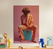 È giocosa, elegante e audace: un perfetto spunto di conversazione per interni moderni, pareti di gallerie o spazi eclettici che celebrano l'umorismo e l'individualità.