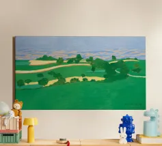 Campi di grano (Les Blés) di Félix Vallotton mostra un sereno paesaggio rurale reso con la chiarezza e la semplicità tipiche dell'artista. La raffinata tavolozza di colori e le forme pulite e quasi grafiche di Vallotton raffigurano campi dorati che si estendono sotto un cielo calmo, creando una composizione che sembra allo stesso tempo pacifica e sorprendentemente moderna. L'equilibrio di luci, ombre e texture delicate evoca il tranquillo calore estivo e il ritmo senza tempo della vita di campagna.