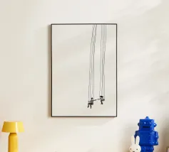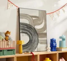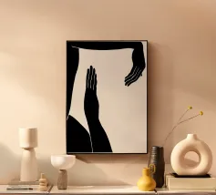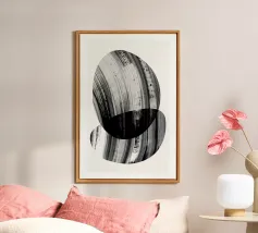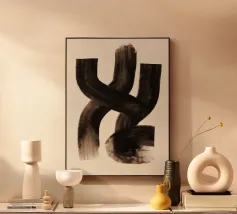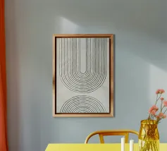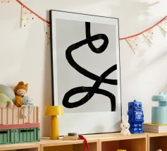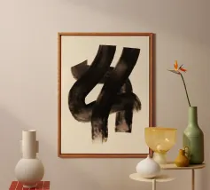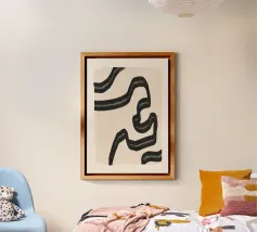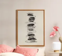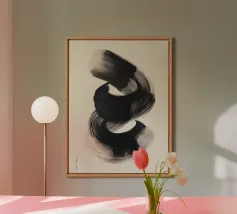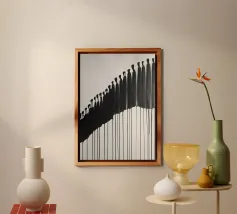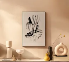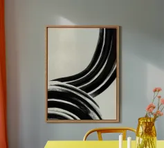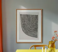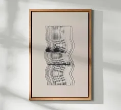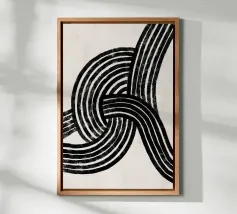 Quest'opera d'arte astratta affascina con una serie di linee curve e fluide che si combinano per formare un motivo armonioso. Le linee nere di varia intensità su sfondo bianco conferiscono al quadro un aspetto moderno e ipnotico. Un pezzo forte ideale per gli interni moderni che enfatizzano l'eleganza semplice e l'arte contemporanea.