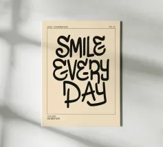 Elevate il vostro spazio con questa arte da parete minimalista che riporta la frase edificante "SMILE EVERY DAY". Questo poster tipografico è indicato come "Affermazione quotidiana n. 25" e offre un'estetica audace, giocosa e moderna, scritta a mano su uno sfondo neutro beige chiaro. Perfetto per l'arredamento di un dormitorio, per l'ufficio di casa o per l'aggiunta alla parete di una galleria, questo download digitale stampabile di alta qualità promuove la positività e la consapevolezza. Il suo design pulito e contemporaneo lo rende un regalo ideale per gli amici o un semplice promemoria per abbracciare la gioia. Cercate questo poster con citazioni motivazionali per illuminare istantaneamente