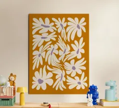 Questo allegro disegno di margherite presenta fiori bianchi e steli verdi vivaci su un caldo sfondo giallo senape. Ispirato all'arte botanica e all'estetica vintage, questo motivo floreale conferirà alla vostra casa un fascino elegante e senza tempo. Che si tratti di un murale, di un cuscino, di una tazza o di una cover per il cellulare, questo motivo è un richiamo versatile per il soggiorno, la camera da letto o l'ufficio. Ideale per gli amanti dell'arredamento di metà secolo, dello stile scandinavo e delle opere d'arte floreali. Un elemento moderno che ravviva e ispira ogni stanza con il suo look fresco.