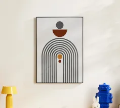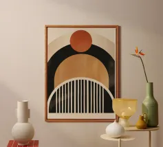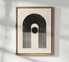 Questo design colpisce per l'armonia degli archi e per la palette di colori caldi e terrosi in marrone, nero e arancione. Le linee geometriche pulite e il sottile tocco vintage lo rendono un'attrazione senza tempo per qualsiasi casa moderna o nostalgica. Perfetto per l'arte da parete, i cuscini o gli accessori per la casa, per dare alla vostra stanza uno stile elegante e unico.