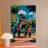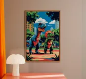 Dinosauri retrò in un parco con edifici urbani alluminio dibond