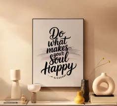 Illuminate la vostra giornata con l'opera d'arte da parete "Do More of What Makes You Happy". Questo pezzo edificante ispira gioia e cura di sé, rendendolo perfetto per qualsiasi stanza della casa. Un promemoria quotidiano ideale per dare priorità alla felicità e alla positività nella vita.