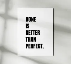 Design minimalista con lo slogan conciso e motivante "Fatto è meglio che perfetto". Un potente promemoria per superare la procrastinazione e agire invece di aspettare che tutto sia perfetto. Perché fare è meglio che cercare il perfezionismo e non finire mai. Ideale per imprenditori, studenti, creativi e amanti della produttività. Questo testo chiaro si adatta perfettamente a magliette, tazze, poster, quaderni e altro ancora: un incentivo quotidiano a superare il perfezionismo e a fare le cose. Personalizzate il carattere a vostro piacimento.