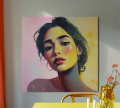 donna che mostra colori vivaci e un'espressione intensa alluminio dibond