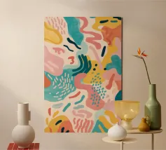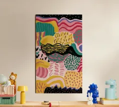 Un'esplosione vibrante di colori dopaminici e texture astratte, questo pezzo irradia un caos gioioso e un'energia massimalista. Ispirato all'estetica della pop art e all'illustrazione digitale moderna, è una dichiarazione audace per gli interni contemporanei. Perfetto per chi ama il colore, il movimento e la libertà artistica.