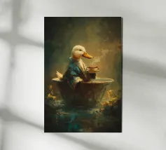 Un simpatico anatroccolo fa capolino da sotto un morbido asciugamano bianco. Le sue soffici piume gialle e i suoi occhi curiosi creano una scena adorabile e affascinante.