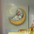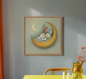 Due conigli che dormono tranquilli su una luna crescente alluminio dibond