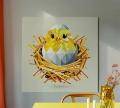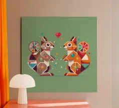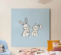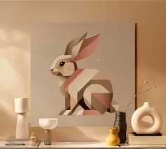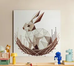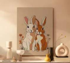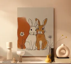 Due conigli dalle forme geometriche morbide e dai toni pacati della terra. La loro rappresentazione in diverse tonalità di marrone aggiunge un tocco giocoso ed elegante. Un'opera d'arte perfetta che incarna l'umore della primavera e la gioia della stagione.