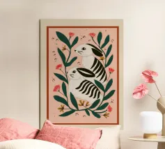 Due coniglietti di Pasqua in un mare di fiori alluminio dibond