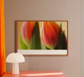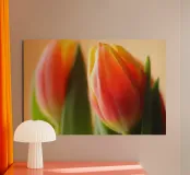 Due tulipani rosso-arancio in una ripresa macro alluminio dibond