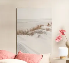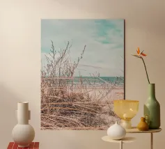 Questo motivo cattura la bellezza idilliaca di un paesaggio di dune assolate che si estende lungo un'ampia spiaggia sabbiosa. I colori caldi dell'erba e della spiaggia che si incurva dolcemente creano un'atmosfera rilassante che trasmette la sensazione di un rifugio tranquillo. Ideale come murale, cover per cellulare, cuscino o tazza per aggiungere un tocco fresco e naturale alla stanza. Perfetto per gli amanti dei motivi da spiaggia, del design scandinavo e dei momenti di pace nella natura.