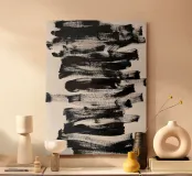 "Echoes of Emotion" cattura il momento di quiete tra il controllo e il caos. Un'energia cruda, quasi fisica, si dispiega in pennellate potenti e ritmiche - nero su bianco, come un'eco di tensioni interiori. La texture ricorda la lotta tra l'espressione e la costrizione, il dolore e la bellezza. Minimalista, ma piena di movimento, quest'opera è un poema visivo sull'intensità dei sentimenti umani. Ideale per ambienti che devono emanare profondità, chiarezza e forza emotiva allo stesso tempo.