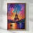 Questo capolavoro impressionista mostra la Torre Eiffel illuminata da uno splendido tramonto parigino. Il dipinto è caratterizzato da nuvole drammatiche, infuse di caldi arancioni e viola, che creano un'atmosfera sognante e magica. La torre si erge come un faro di eleganza, con i suoi dettagli intricati messi in risalto dallo sfondo luminoso. I riflessi della luce scintillano sul fiume e le figure in primo piano aggiungono vita e scala alla composizione. Le pennellate e i colori dinamici catturano perfettamente l'energia e il romanticismo di Parigi, offrendo un'interpretazione moderna del suo fascino iconico.