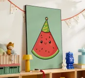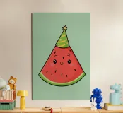 Fetta di cocomero felice con cappello da festa alluminio dibond