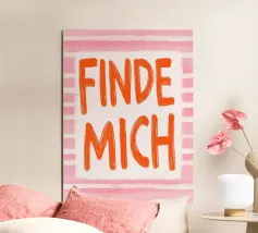 Nei toni vivaci dell'arancione e del viola, questa stampa d'arte "Find me" esprime a grandi lettere e a strisce il desiderio di amore e di scoperta di sé. La tipografia romantica incornicia la ricerca di un partner e lo stare insieme. Ideale per l'estate, il disegno cattura in modo giocoso l'essenza delle relazioni.