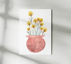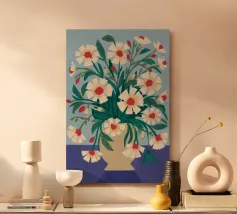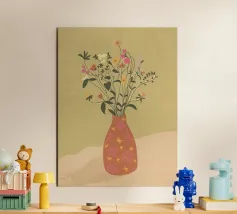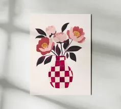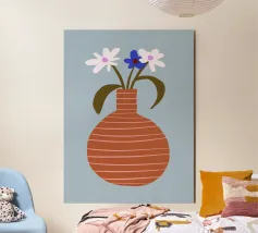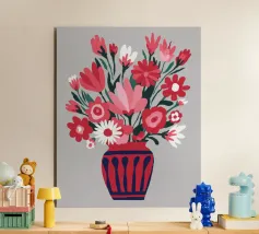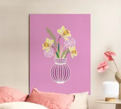Fiori di colore rosa in un vaso dipinto alluminio dibond