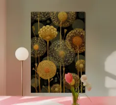Un'impressionante esibizione di fuochi d'artificio astratti resi in una pulita geometria Bauhaus. Linee radianti e audaci esplosioni circolari illuminano la tela scura con un contrasto festoso e un tocco minimalista. Una celebrazione del movimento, del ritmo e della magia delle feste, perfetta per gli interni moderni alla ricerca di un tocco stagionale unico.