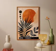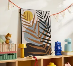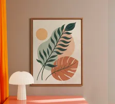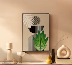 foglie di palma tropicale forme geometriche linee strisce alluminio dibond con Cornice Artbox