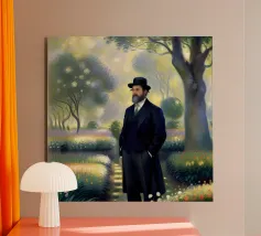 un tentativo di ritratto surreale contemporaneo per Claude Monet. con bordo.