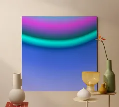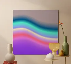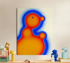 Due forme dai contorni fusi si fronteggiano, come se levitassero. I loro colori cangianti ondeggiano su uno sfondo color lavanda, creando un effetto calmo e ipnotico. L'immagine evoca un dialogo silenzioso tra due entità astratte, vicine ma separate, in uno spazio fluttuante.