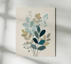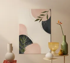 Forme astratte ad acquerello ed elementi botanici alluminio dibond