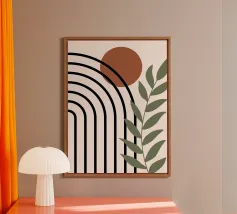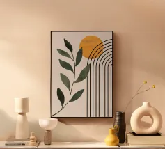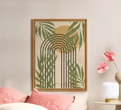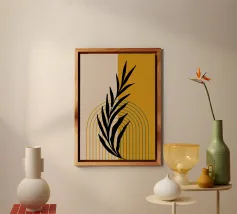 forme astratte foglie linee geometriche linee ad arco giallo c alluminio dibond con Cornice Artbox