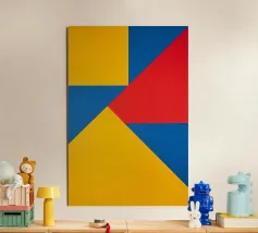 Forme geometriche colorate disposte in una vibrante composizione alluminio dibond